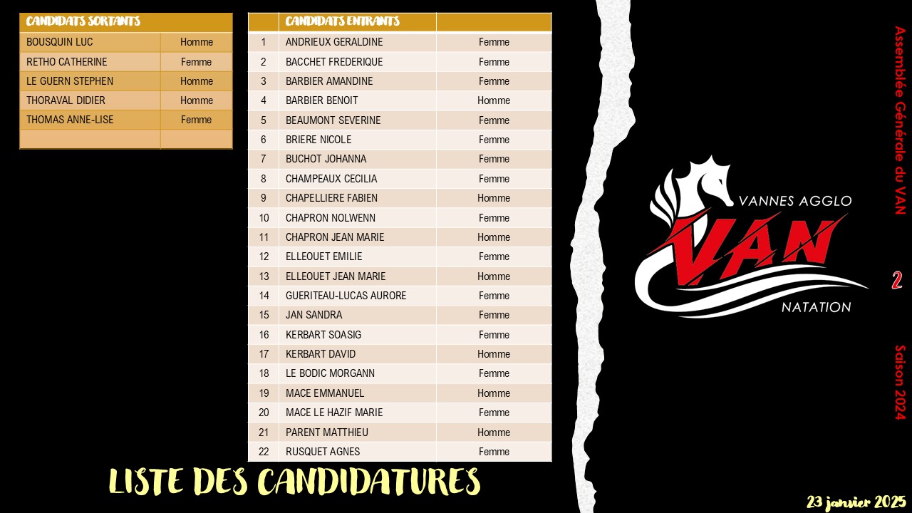 Fichier joint : Présentation de l'assemblée Générale Ordinaire du VAN-Saison 2023-2024 / liste des candidatures au comité directeur du VAN